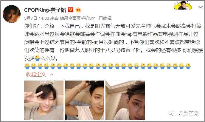 黄子韬能走出自己的一片天,是因为一直保持一种向上的姿态并为之努力,从不惧于表达自己,该冒泡时就冒泡,毕竟,不冒泡,没机会。