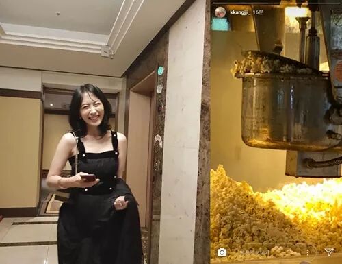 此前,姜智英在自己通过INS上传了爆米花的视频。并且没有特别进行说明。但对此,日本网友推测姜智英正在饶有兴趣地关注着具荷拉和男友A某的事件,或许是基于“팝콘각”之意上传了这个视频。正如人们一边吃着爆米花一边看电影一样,“팝콘각”是一个指饶有兴趣地关注着某事的新造词。然而,也有网民提出反对意见:“这是在硬扯”。结果,姜智英方面为消除舆论做出了解释:“该爆米花照片和具荷拉事件完全没有任何关联”。