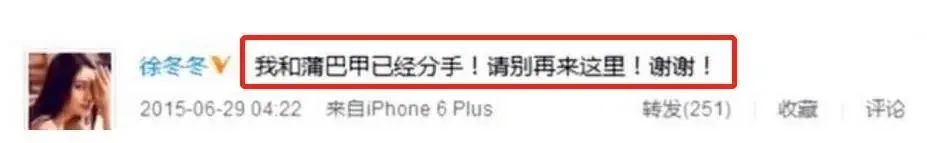 要知道,徐冬冬发布和蒲巴甲分手的消息是在6月29日。