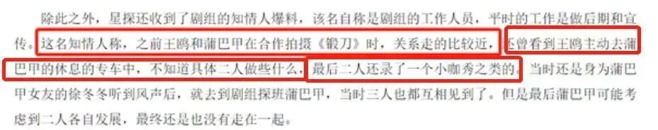 本以为这件事到此结束,谁知道徐冬冬的闺蜜在两人分手后马上爆料蒲巴甲出轨。