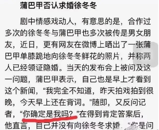 只是在2015年,当被问及求婚一事时,蒲巴甲却矢口否认,还问记者:“你确定是我吗?”