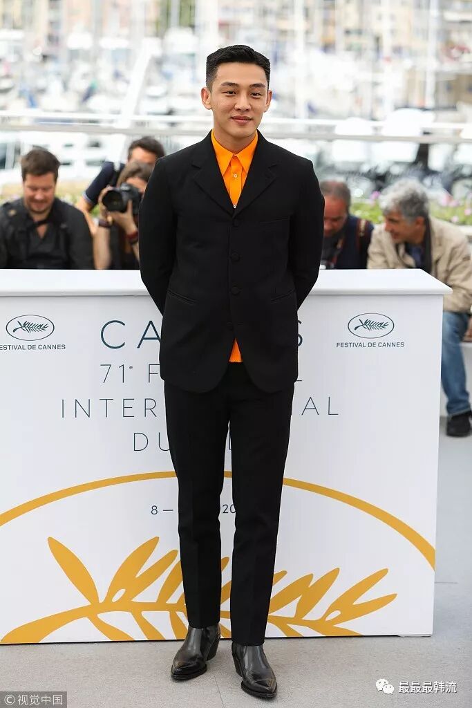 刘亚仁戛纳电影节这一套竟然出其不意搭了个橘色衬衣。不过这个颜色除了显黑一点也没什么不好,人群中一抹橘色超亮眼。