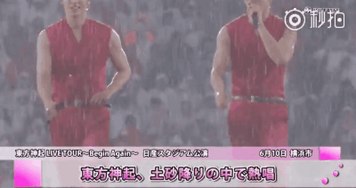 而最被大家提起的可能就是去年韩团东方神起在日本开演唱会,当时下暴雨,他们在雨中唱跳4小时,威亚照样吊,没有丝毫失误。