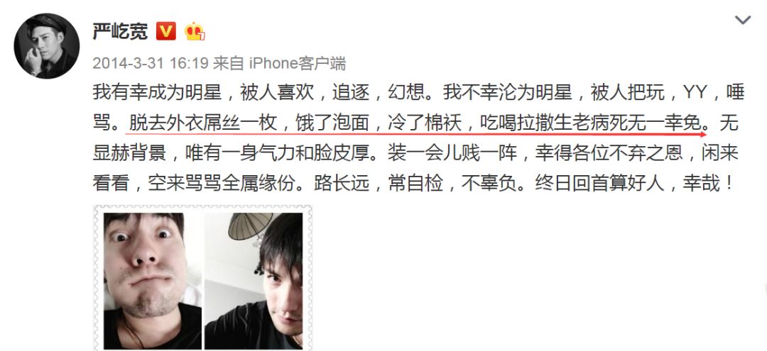 之前严屹宽被评为“天涯四美”,他还亲自转发,称自己是非常被动的。
