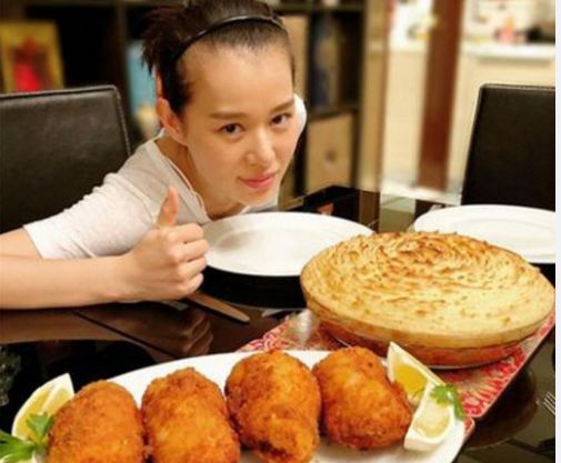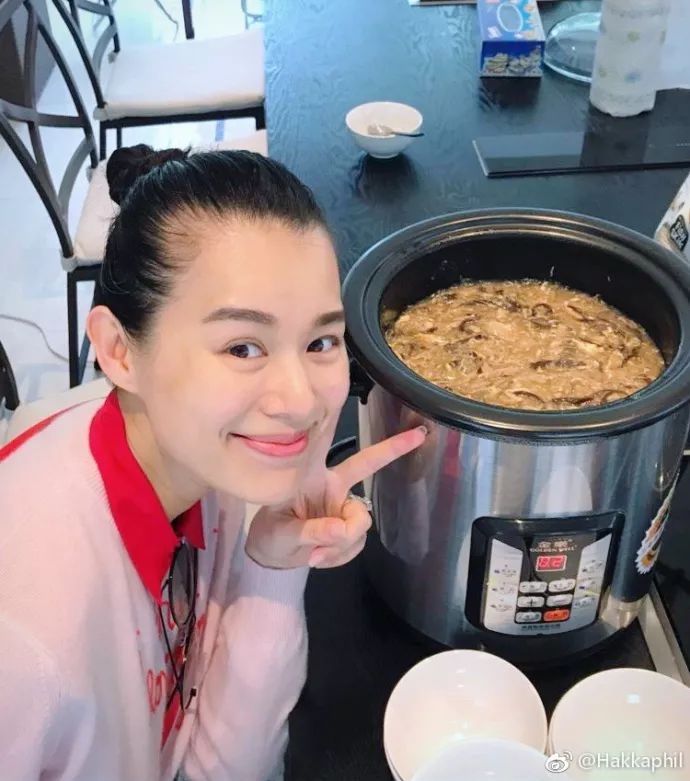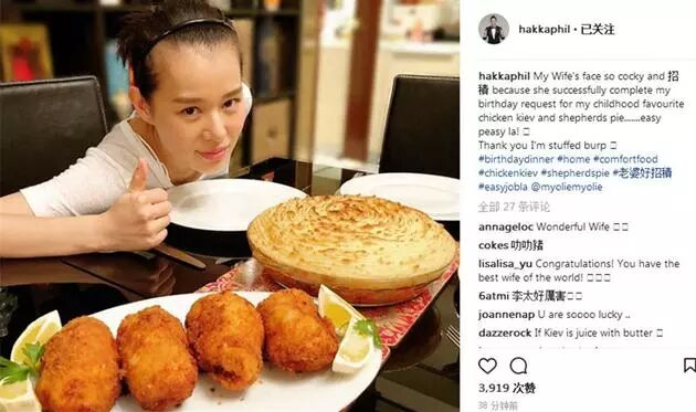 胡杏儿不仅是素颜,扎得很紧的头发还戴着发箍,表情也很魔性。胡杏儿老公称“我妻子满脸骄傲,因为她圆满完成了我的生日愿望——帮我做我小时候最爱吃的基辅鸡和牧羊人派。”