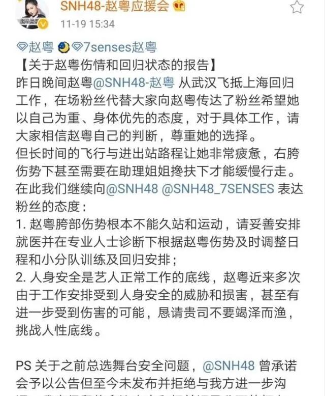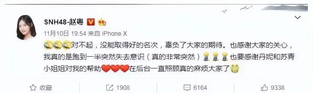 发现问题的赵粤第一时间就被送回家乡休养;结果休养没几天又听到公司的号召,为了工作和粉丝,她只好拖着重病上战场。