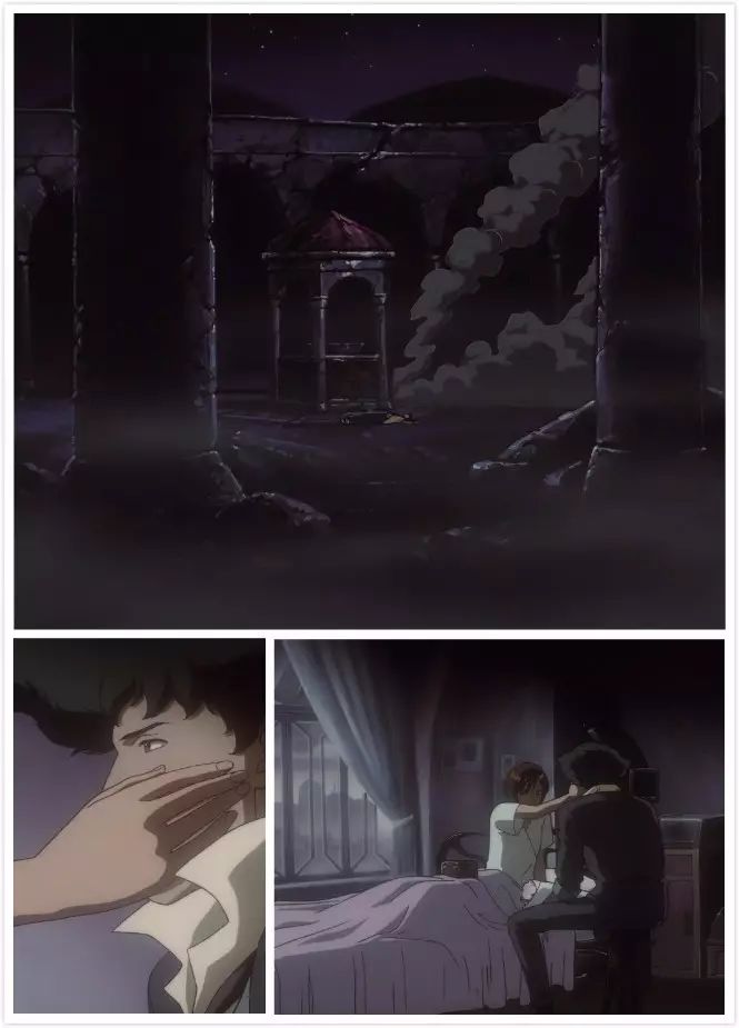 不知是不是因为渡边导演或是菅野作曲两人中某一位对八音盒有着特殊的爱好,这种与《星际牛仔》故事中近未来的设定格格不入的乐器,在系列故事中占了不小的分量。随着滚筒拨动簧片时响起的,那种如宝石般晶莹通透的音色,听似平静而恬淡,却随着泛音在空寂的房间中涟漪般地扩散、碰撞与回响,反而在听者心中激荡起五味交杂的复杂感受。