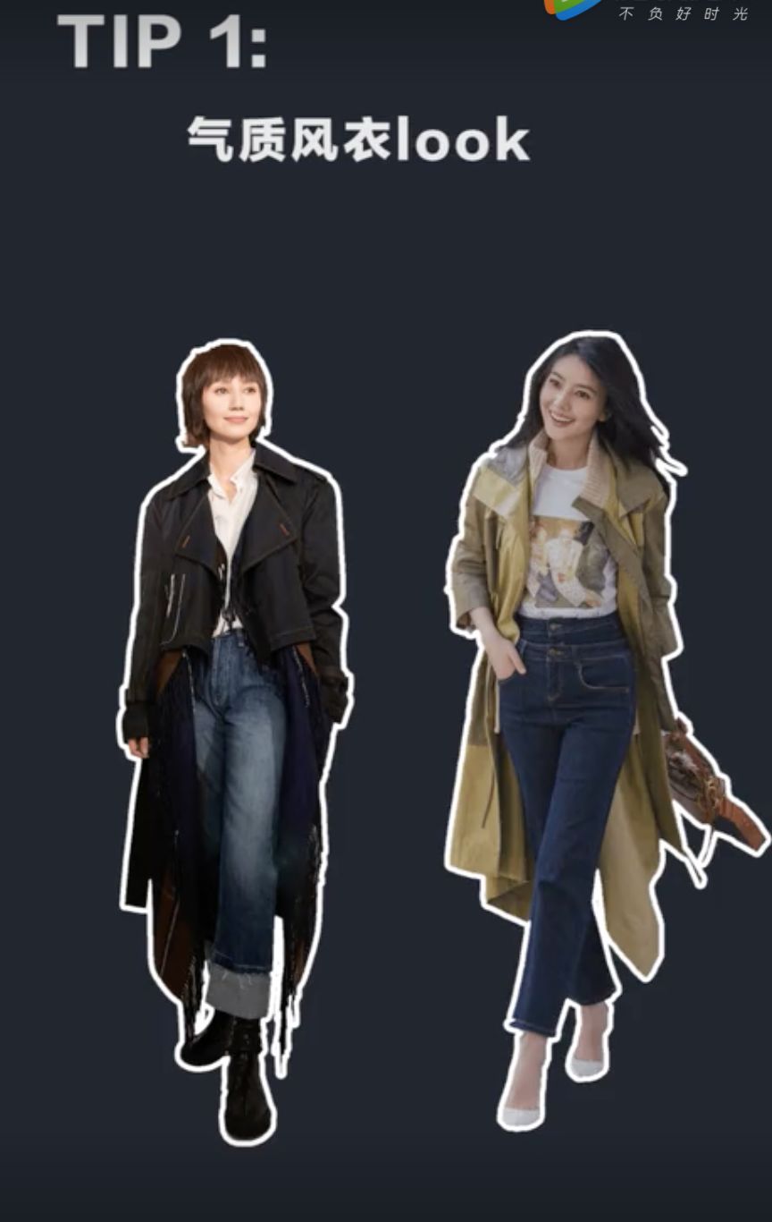 第一款:气质风衣look,风衣自带优雅气质,拥有一秒变女神的魔力