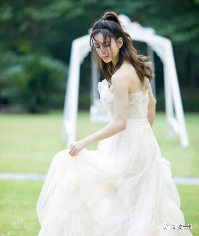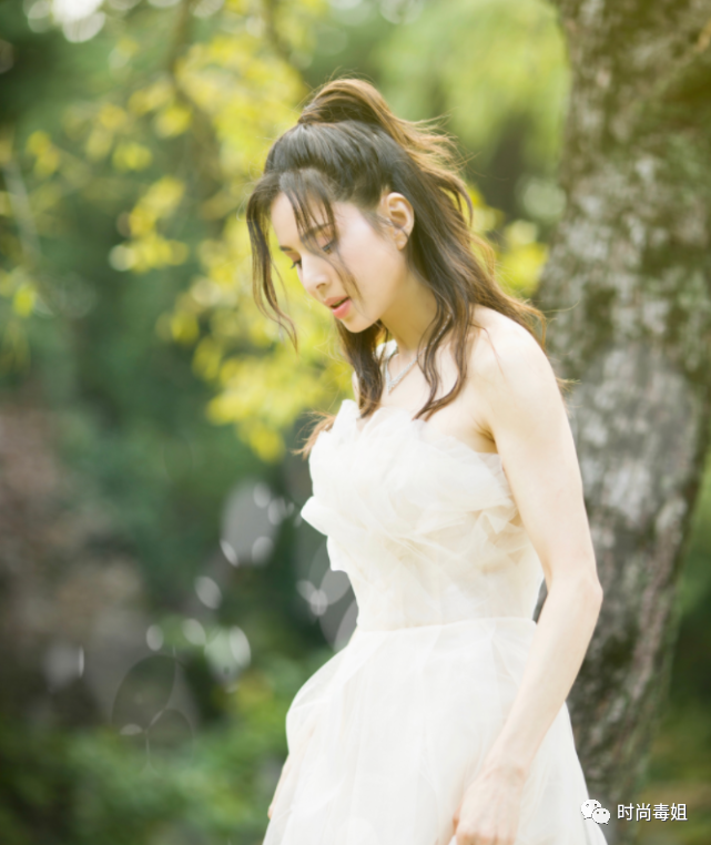 李若彤捡起一片树叶挡住阳光,露出娇羞的笑容像个小女孩,婚纱抹胸的设计将她的小香肩展露无遗,气质撩人、肤白如雪无一不让人着迷,女神从出道就凭借高颜值的外表圈粉无数,谁又曾想到20多年后的她依旧是那般美艳动人,果真是活到老美到老。