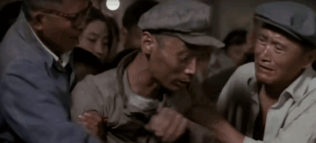而在影片中后期,当富贵得知自己唯一的儿子有庆死时,他脸上的悲伤更是无法言说。就一个表情特写,就能看到他身为父亲内心的苦楚。