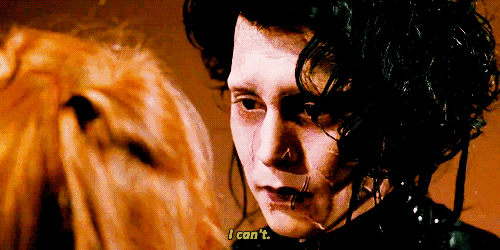 印象最深的一场戏是女主说抱我,爱德华抬起剪刀手又放下,想到自己的拥抱可能会给对方带来伤害,接着回答说我不能