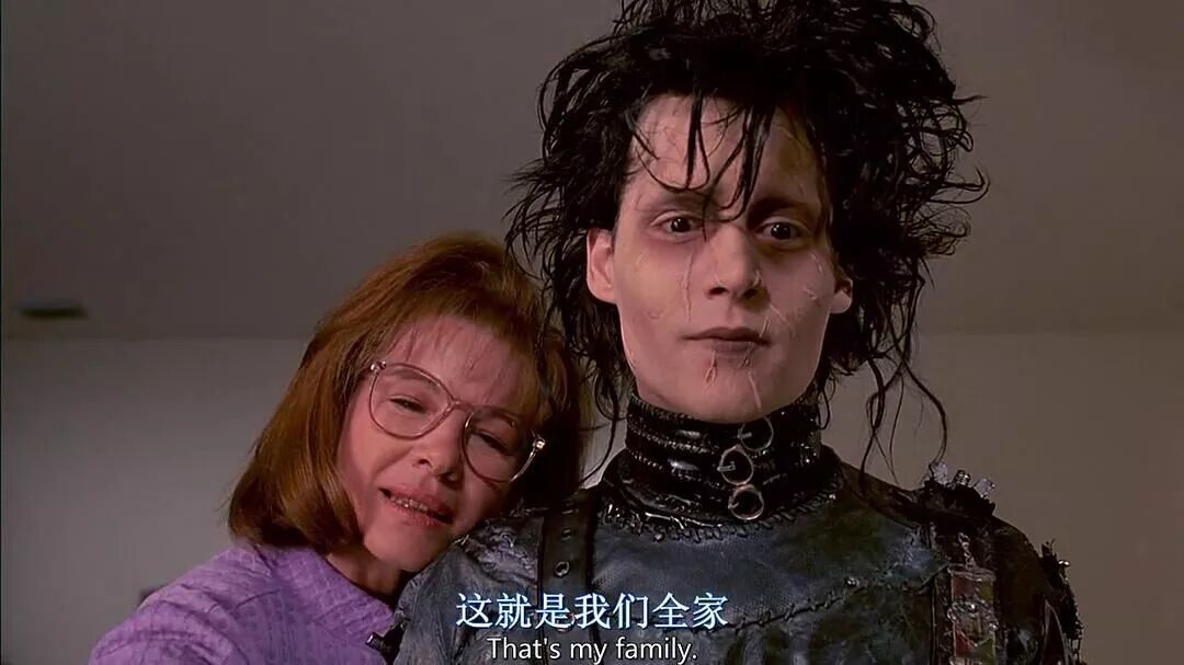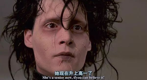 但德普却通过眼睛传达出了爱,完美表现出爱德华对人类世界的恐慌忧郁,以及他孩童般的心。