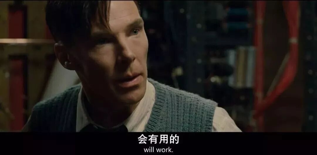 但当同伴质疑他创造的破译密码机器,他直视对方,一脸坚定