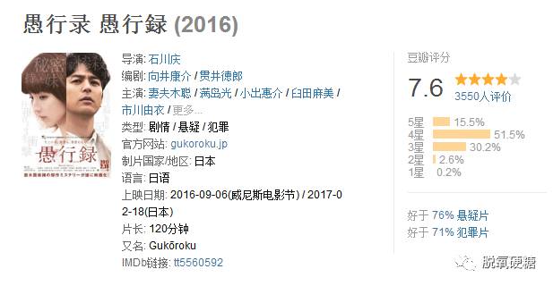 目前豆瓣的评分保持在7.6分,四星,好于76%的悬疑片。