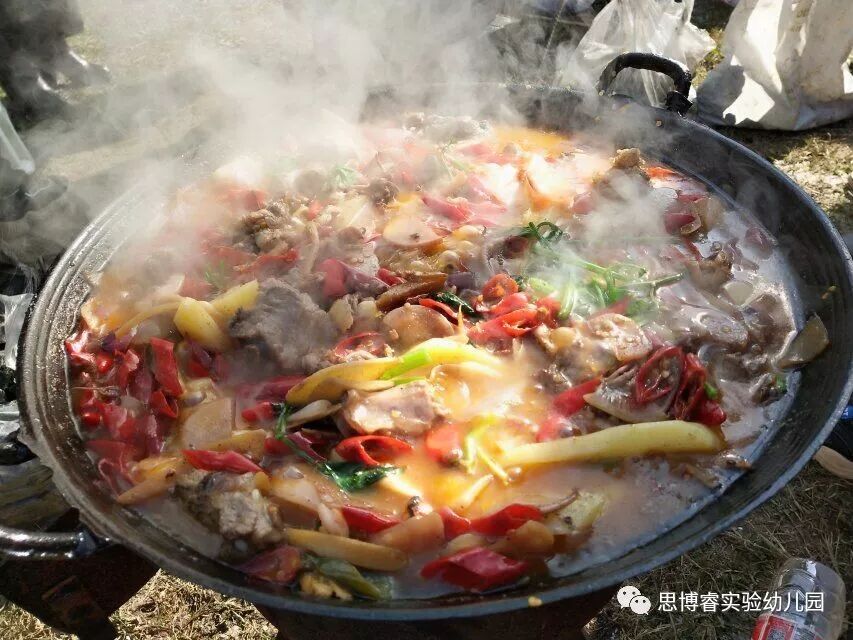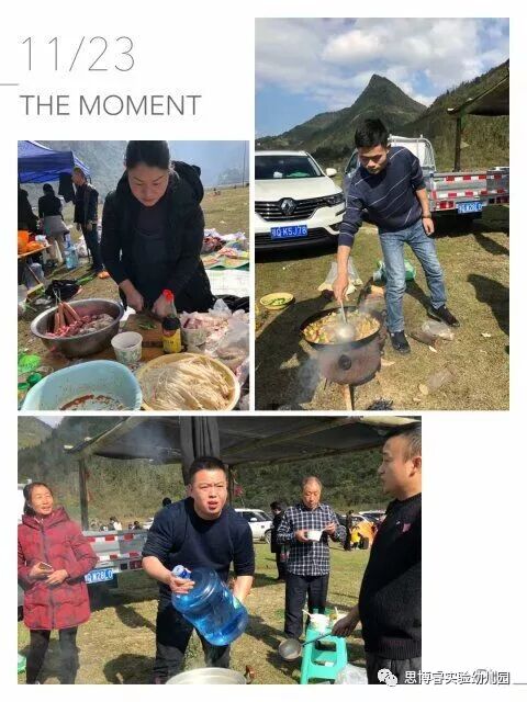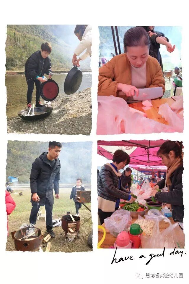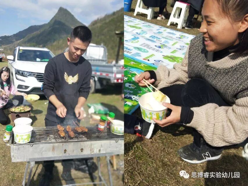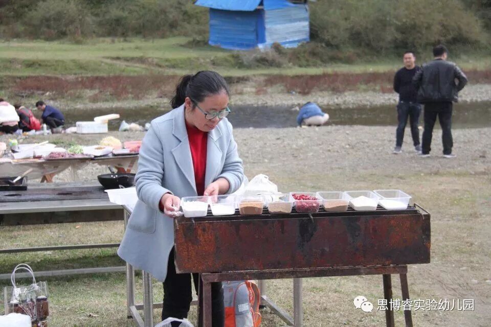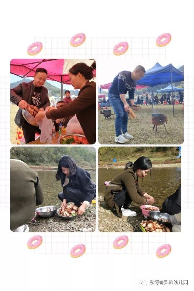 洗菜、穿串、生火、煮饭,忙得不亦乐乎!大家纷纷自己动手,制作着一道道美味的菜肴。