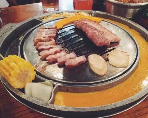 韩国主持人姜虎东的烤肉店。地道的韩国烤肉,地道的韩国烤肉,总是要排很长很长的队,最好提前取号。服务员态度很好。小菜很多,也很爽口。烤盘的边上可以放鸡蛋液和芝士玉米,味道超级好!推荐海鲜嫩豆腐汤,汤汁很香,再搭配上赠的米饭和豆芽拌在一起,地道的韩国吃法。牛五花和五花肉烤完蘸酱吃一点都不腻!可以不用去韩国也可以和欧巴欧尼们吃同一家餐厅啦!