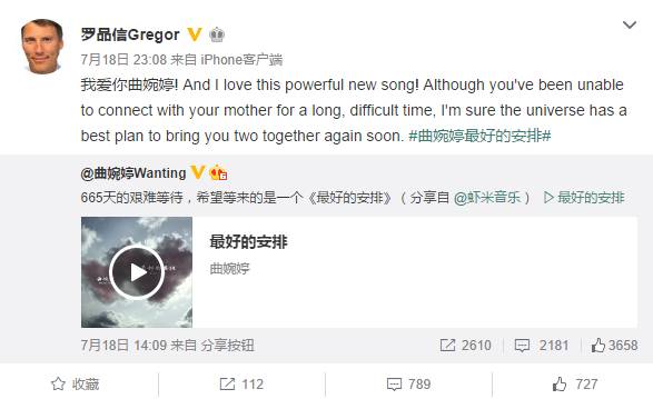 身为温哥华市长的男朋友也帮曲婉婷声援,在微博上称相信宇宙在冥冥之中有最好的安排,希望曲婉婷一家团聚 。