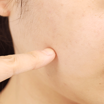 箭头 3 位置:咬肌部分,往里缩了一圈,相比右侧轮廓提升。