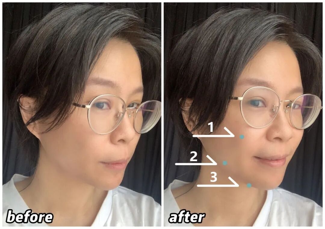 箭头 1 :也是让雍哥 pick 的点 ——「淡化法令纹」的效果很明显。▼
