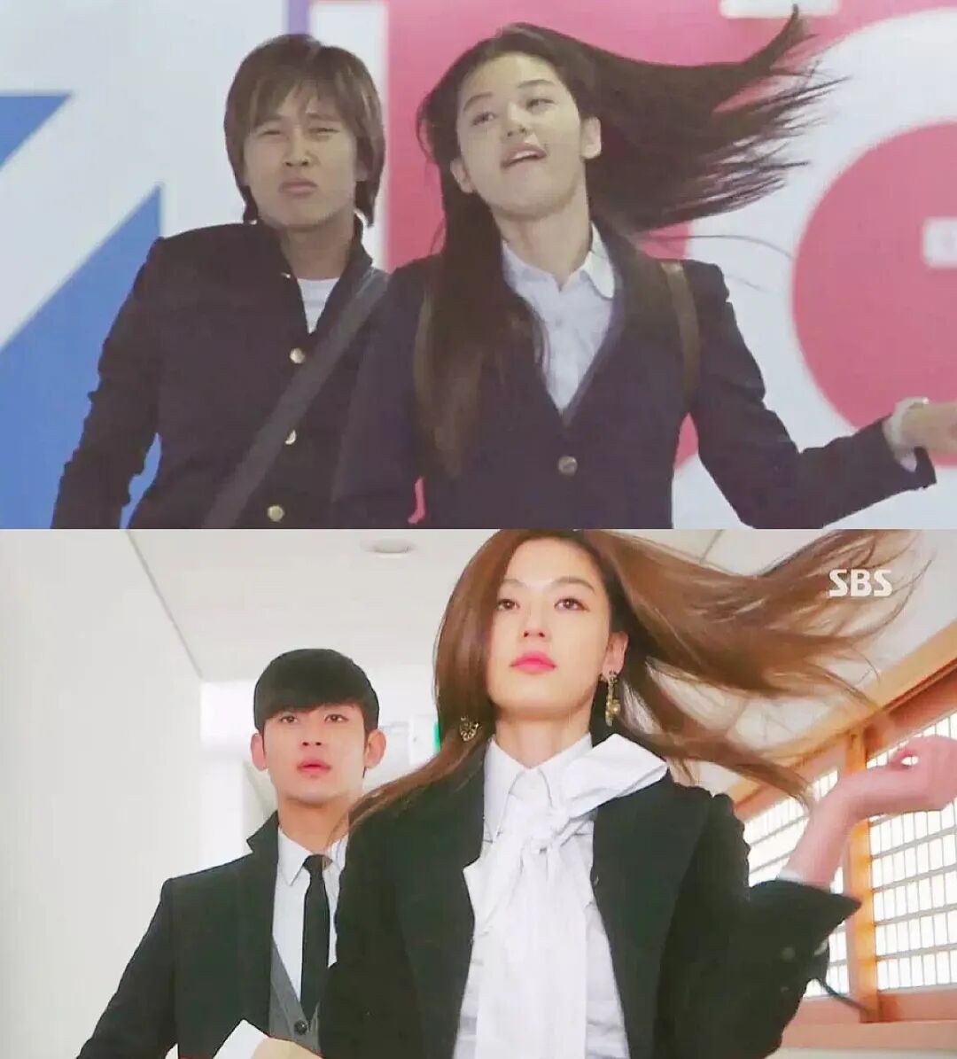其实就是主创们的巧思 —— 致敬全智贤这个经典镜头。▼