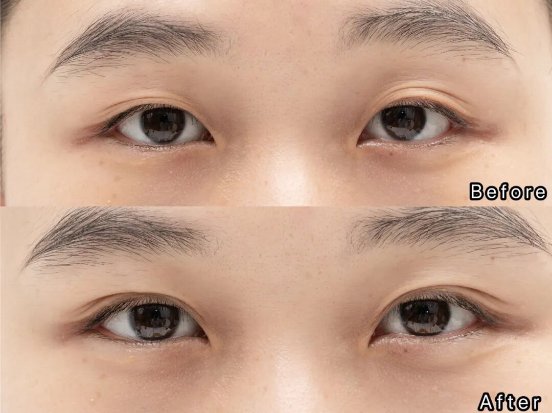 箭头 1 位置:上眼皮双眼皮完全打开了,相比右边眼皮形状下塌,效果明显。