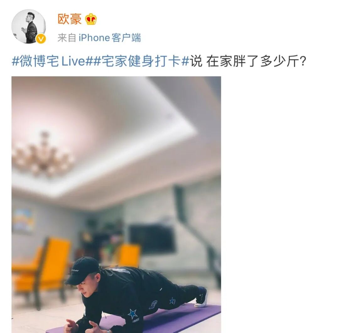 不过欧豪这段时间一直都选择居家锻炼