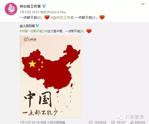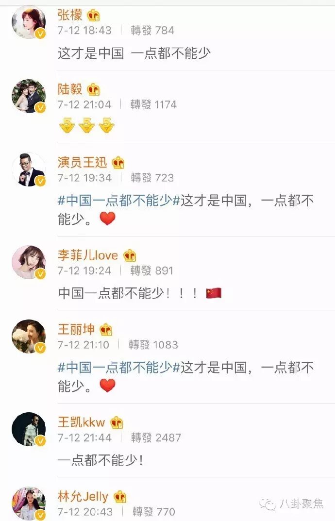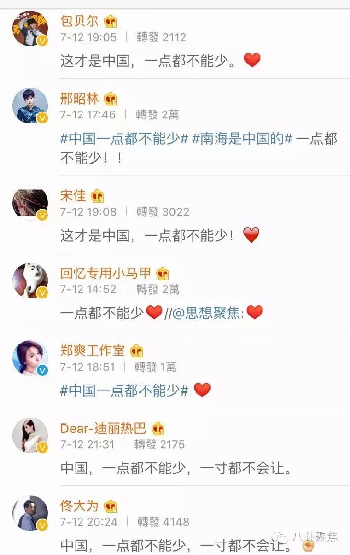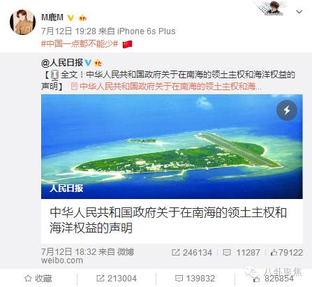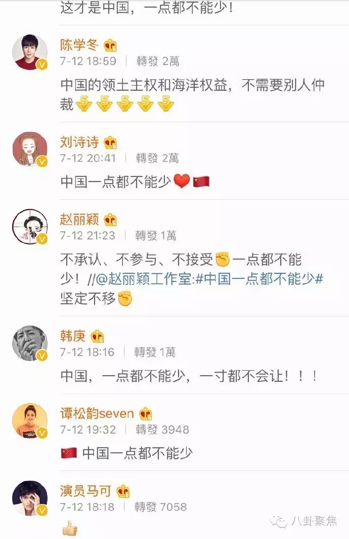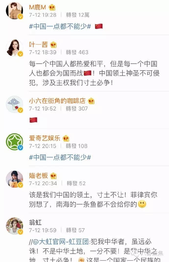 最近几天“南海仲裁”的新闻一直围绕在国人的身边,不仅我们老百姓关心,就连明星们也一直关注着