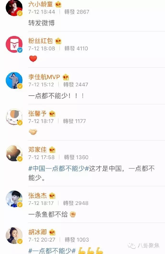 消息一出,好多明星在自己的微博上发文支持维权,中国一点都不能少