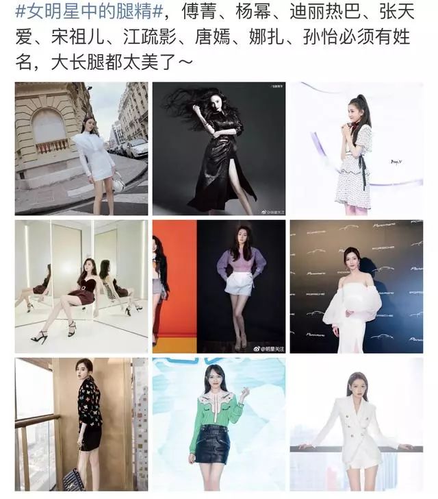现如今娱乐圈的女明星,想出位不得不拥有三大法宝:肤白、貌美、大长腿。典型代表不胜枚举,前两天#女明星中的腿精#就上了热搜,让人大饱眼福。