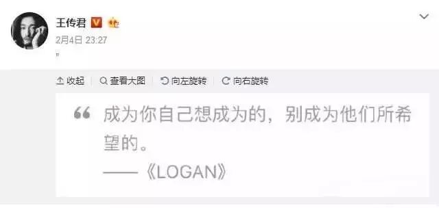 王传君话不多,微博上发的东西除了喜欢的电影,就是很少的电影宣传,他发的文字成熟又内敛,他不讨好任何人,清醒又独立。