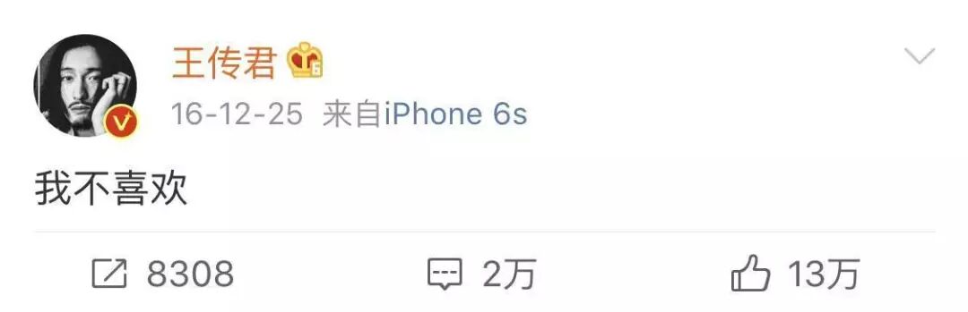 但是王传君发声了,简单的四个字,“我不喜欢”,很真实,也很有力量。