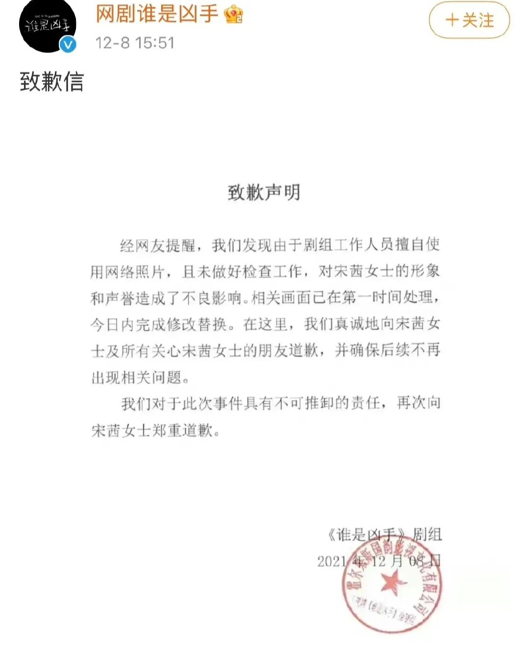 《谁是凶手》又又又道歉了...抄袭海报、拿宋茜旧照当受害人照片,这才刚道完歉,剧里竟然又出现了于和伟和王丽坤的同框照,看个剧还附赠陈年老瓜,就跟故意的一样。新的道歉声明估计马上就要来了。剧明明挺好看的,非整出那么多骚操作。现在db评分已经开始倒着走了,这幺蛾子一出接一出对几个主演的口碑还是会产生很大影响的。