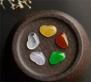 或者同时具有红色、黄色、绿色的三色翡翠。