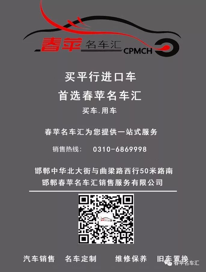 春苹名车汇在售的品牌有奔驰、宝马、奥迪、路虎、丰田、日产、玛莎拉蒂等,有想要的小伙伴可以扫描下方二维码关注本公众号查看,或拨打下方电话咨询。