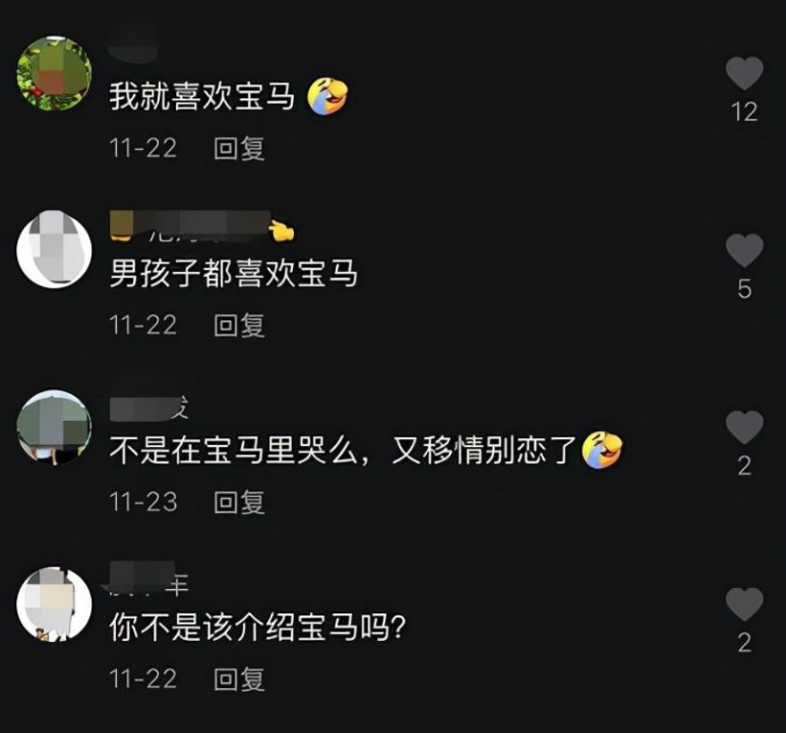 不过在她的社交动态里,总有好事的网友在评论区调侃宝马的事,怒怼她的拜金主义,甚至发表人身攻击的言语。