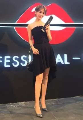 参加品牌化妆品发布会,仍然是黑色造型,显得肤白腿长,美艳迷人。