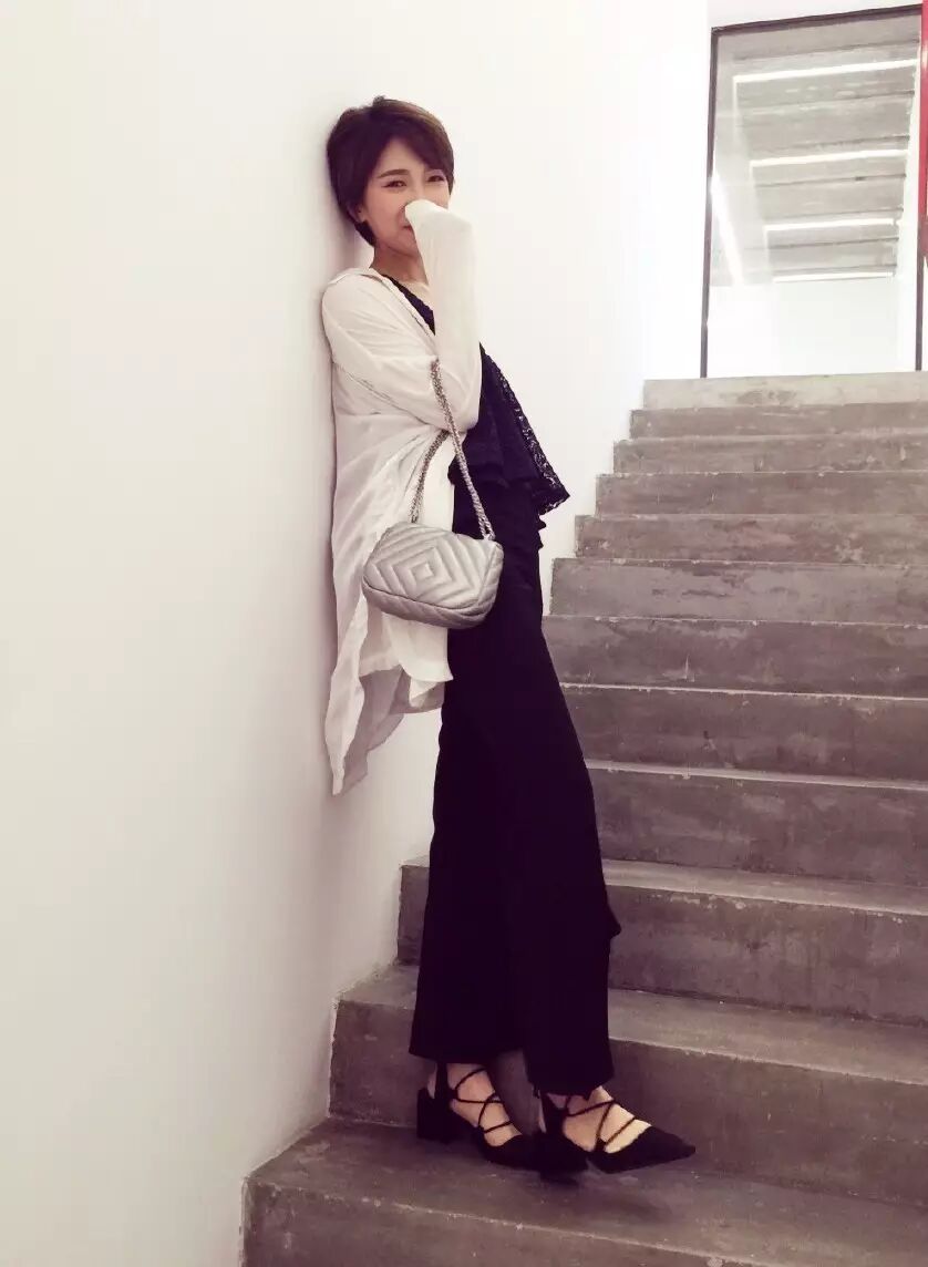 长发,虽然被她的粉丝吐槽像男人扮了女装,但五官还是很好看~