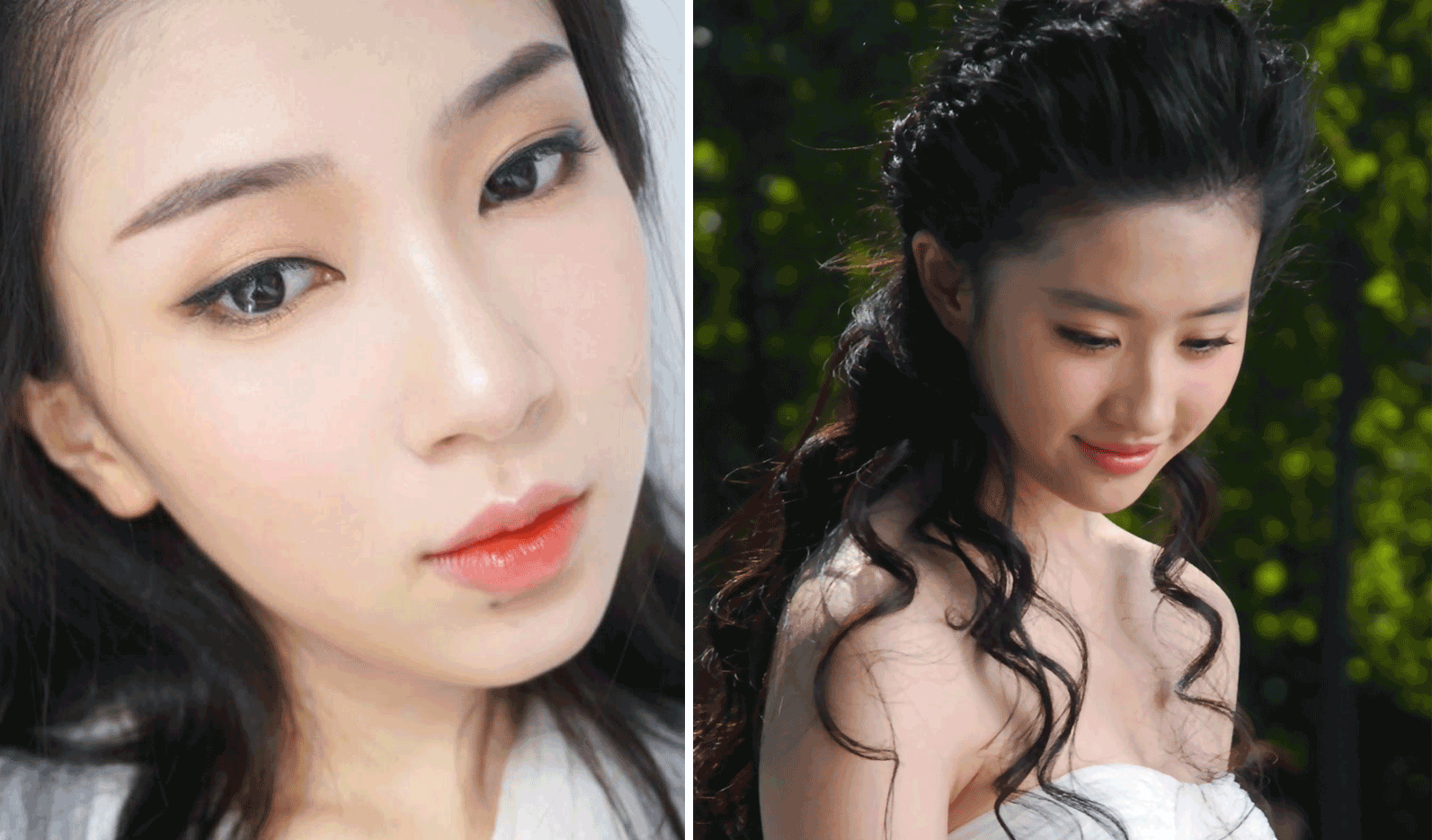 直接对比眼妆部分,看起来一模一样,简直是神作啊~