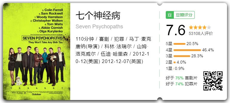 Marty(柯林·法瑞尔 Colin Farrell 饰)是一个爱喝酒的电影编剧,他的好友Billy(山姆·洛克威尔 Sam Rockwell 饰)则和Hans(克里斯托弗·沃肯 Christopher Walken饰)靠偷狗然后把狗还回给失主来赚钱。Marty近期在写 一个叫《七个神经病》的剧本,却没有什么灵感,于是Billy给他提供了一些素材。有一个神经病是一个杀手,每次杀完人都会扔下一张J扑克牌,有一个越南的复仇者,有一个自刎的贵格教徒....Billy偷了一条狗,这条狗是一个黑帮老大Charlie(伍迪·哈里森 Woody Harrelson 饰)的爱犬。Charlie丢了他视如生命的狗,到处在寻找。他找到了Hans住院的妻子并杀害了她。Billy知道这件事后,愤怒的将他的情人杀害,而她也是Charlie的情人,随后Billy扔下了一张扑克牌。原来Billy就是那个神经病杀手。他和Marty、Hans来到野外继续写剧本,同时他也让Charlie单枪匹马前来决斗....