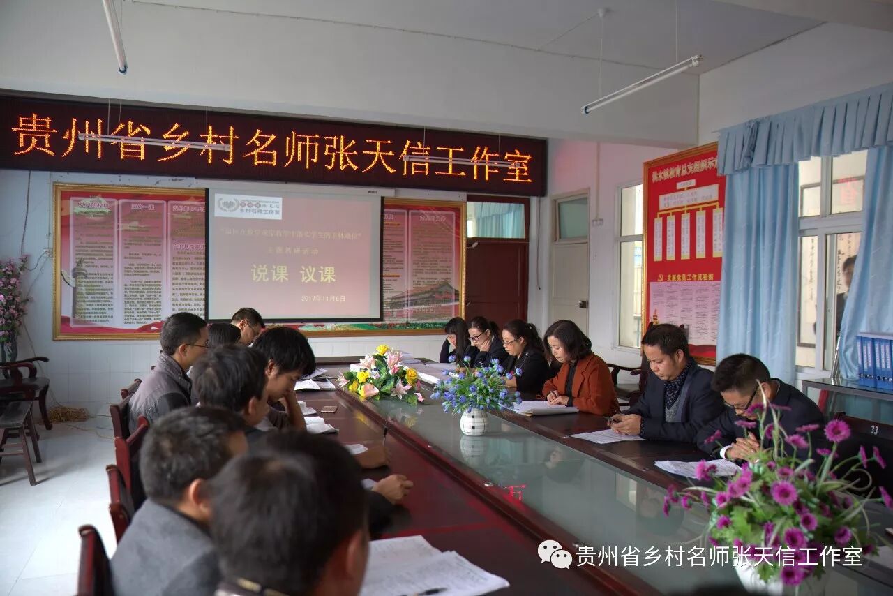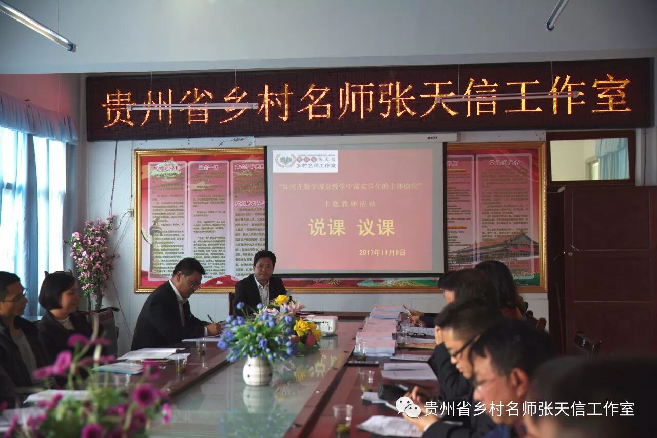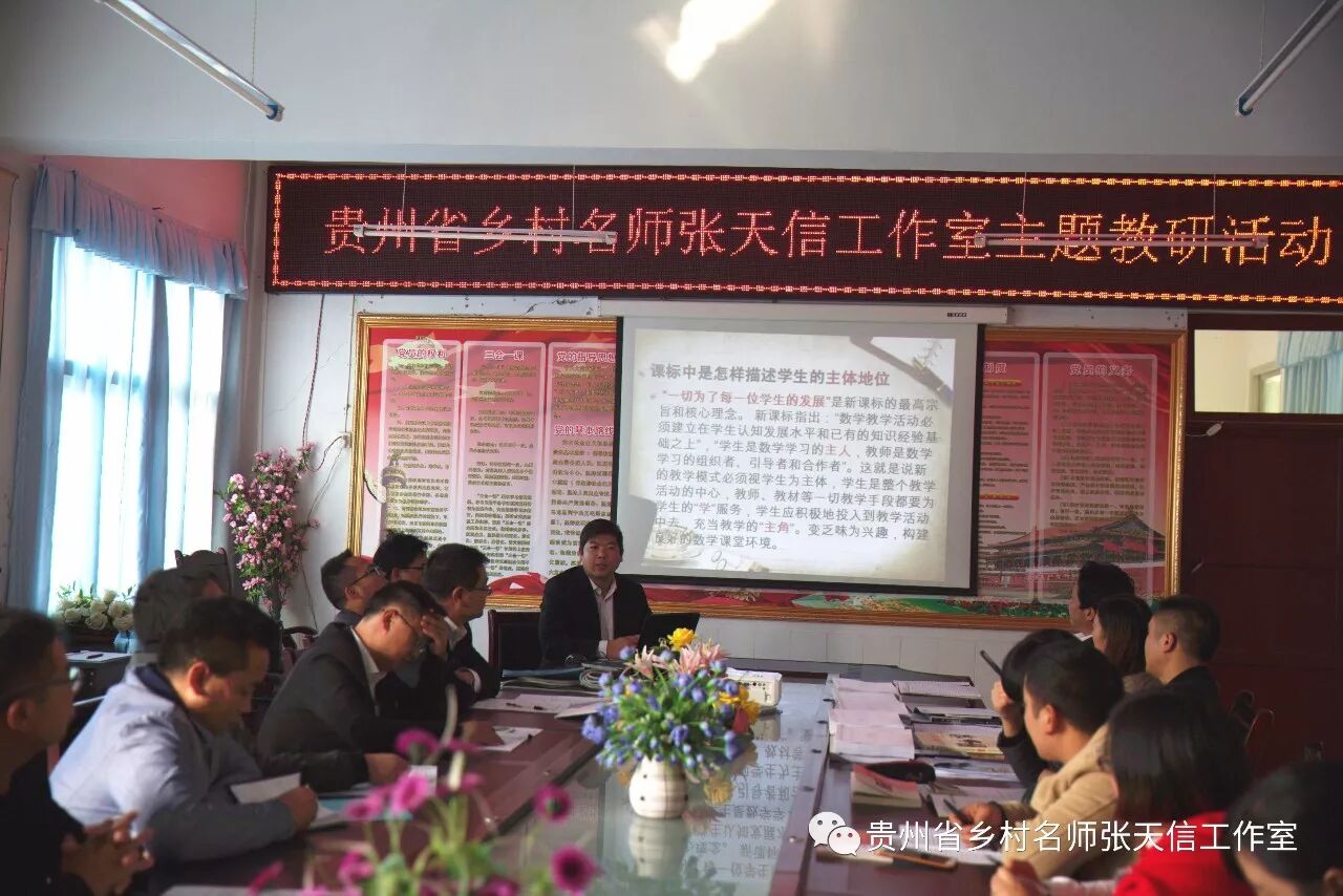 11月6日,省级乡村名师张天信工作室首次“如何在数学课堂教学中落实学生的主体地位”主题教研活动在洪水镇洪水中学、洪水小学举行。工作室成员、学员以及黔西县教育局第三学区中小学数学教师代表共50余人参加活动,工作室的示范引领作用初见成效。