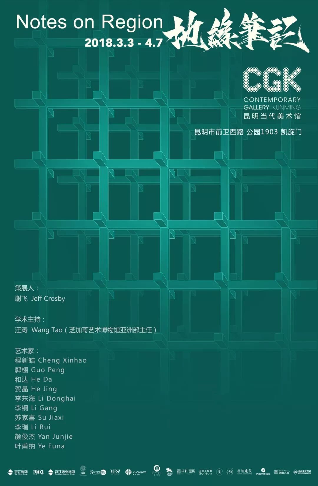 2018年3月3日,昆明当代美术馆(CGK,Contemporary Gallery Kunming)将正式开馆。《地缘笔记》作为首展,由十位“80后”艺术家所创作的艺术作品组成,这些作品也是首次在云南亮相展出。