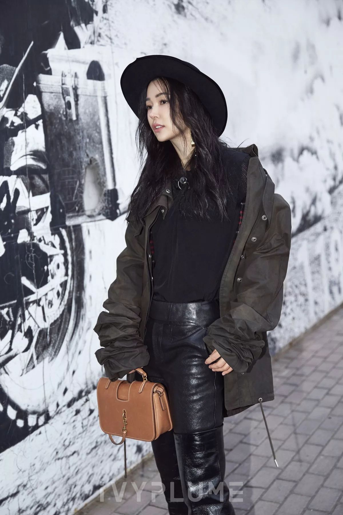 姚星彤 最新#IVYPLUME街拍# 美图来了褶皱袖口的设计点缀暗酷的工装外套,酷靓的修身皮裤搭配过膝长筒皮靴,整体酷帅有型!