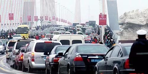 ▲ 八一大桥桥面结冰,车辆通行受阻