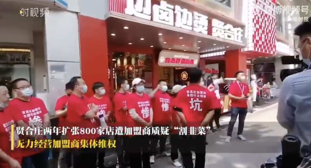 这些人都是陈赫代言火锅品牌“贤合庄”的加盟商,本来是看中陈赫的名气开的店,结果开业后赔的血本无归。