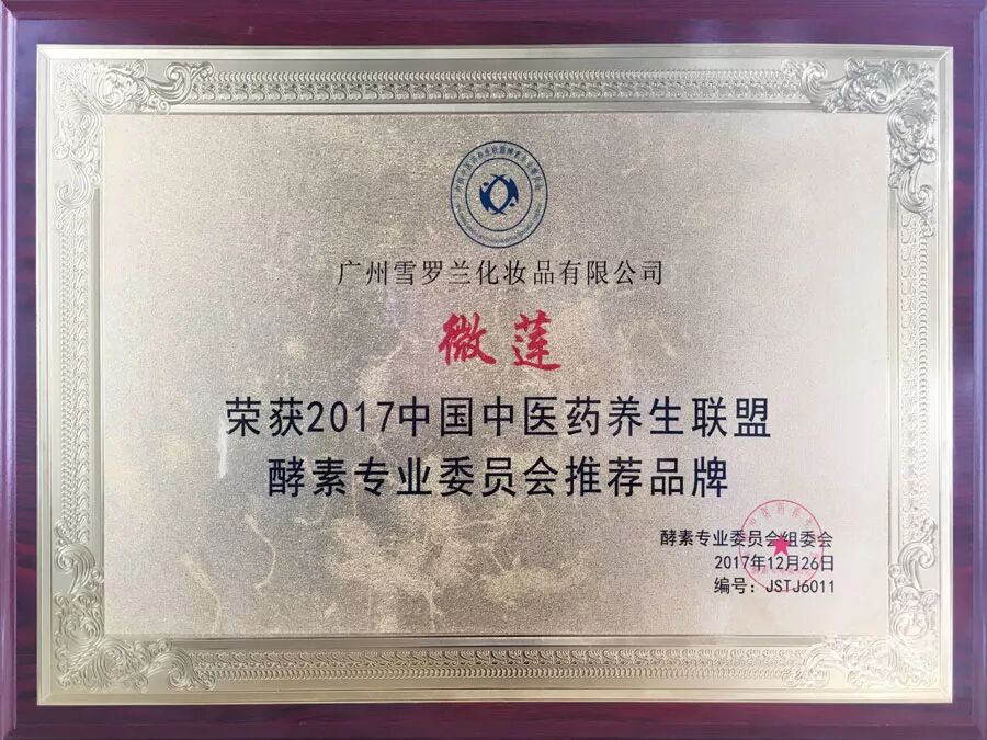2017年12月26日,雪罗兰总经理何浩文先生出席由佳联集团主办的“酵赢天下 携手共赢”酵素行业发展峰会,本次峰会除了受邀的专家学者外,还吸引了众多美业和健康养生行业的从业人员参与,峰会分享了酵素大健康产业的发展相关议题。与会期间,雪罗兰“薇莲”酵素系列荣获2017中国中医药养生联盟酵素专业委员会推荐品牌荣誉。