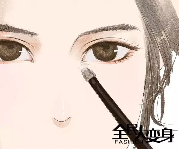 并以遮瑕刷取代指腹上妆,看起来会更自然。