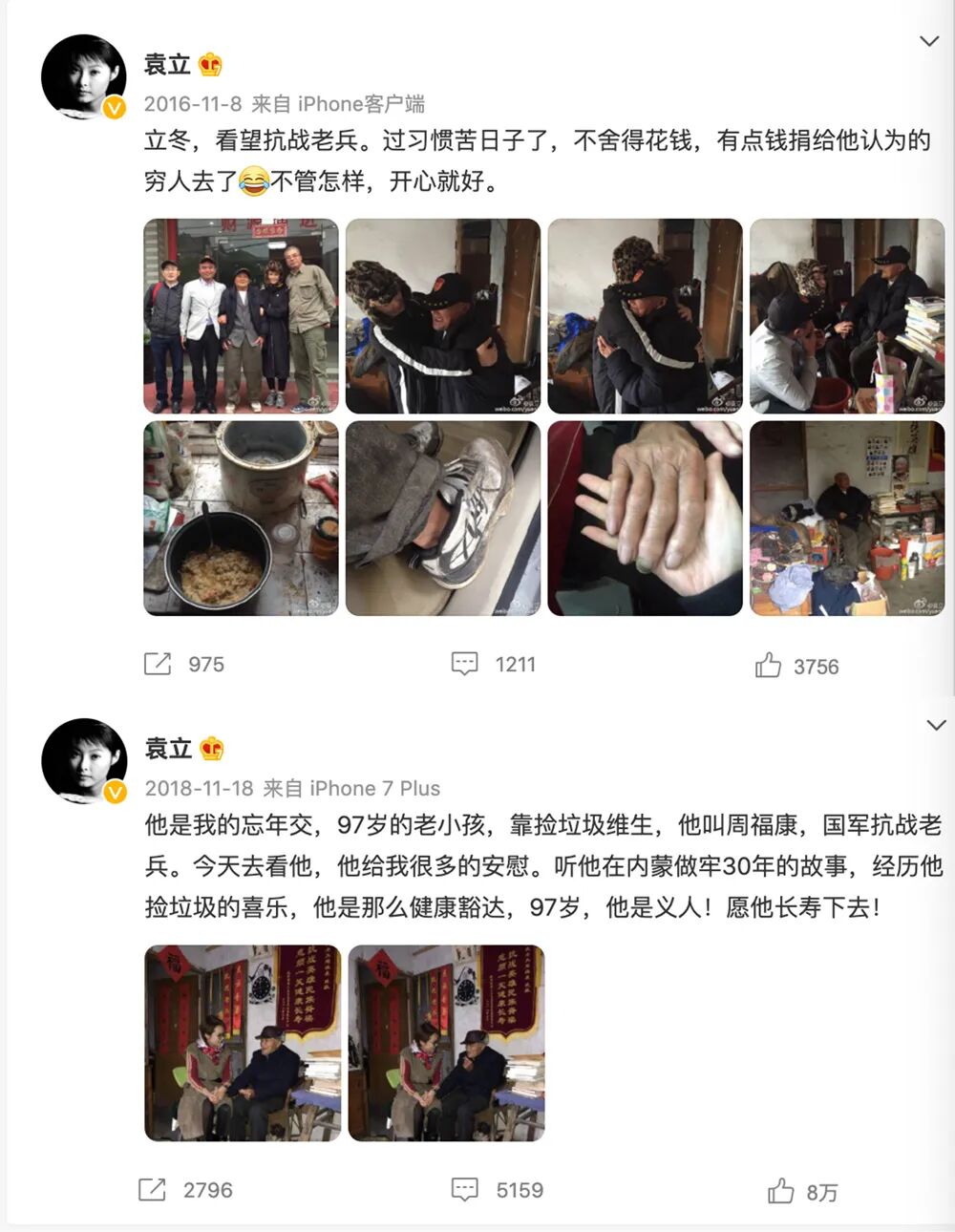 同样的,袁立不只是捐款,还会定期访问,提供物资等帮助。