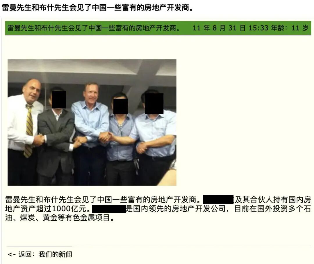 在2011年期间,莱曼布什公司就会见了中国各行各业的大佬,想要借此布局中国市场。