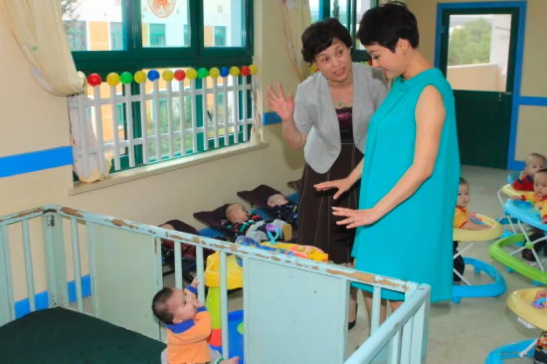 袁立在检查出怀孕后的数月后,去了一家托儿所找小孩玩。