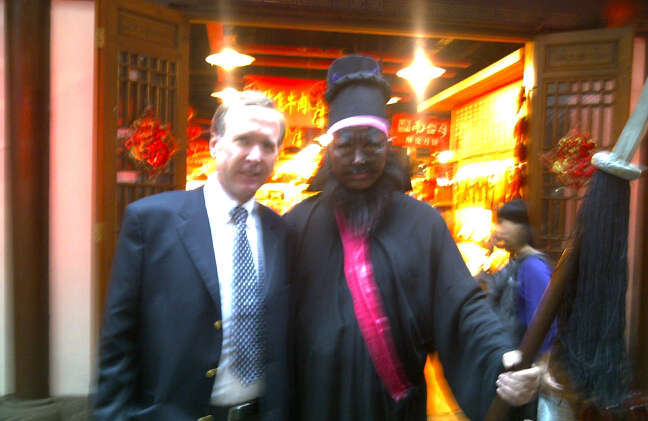 尼尔·布什在成都春熙路那块买张飞牛肉。